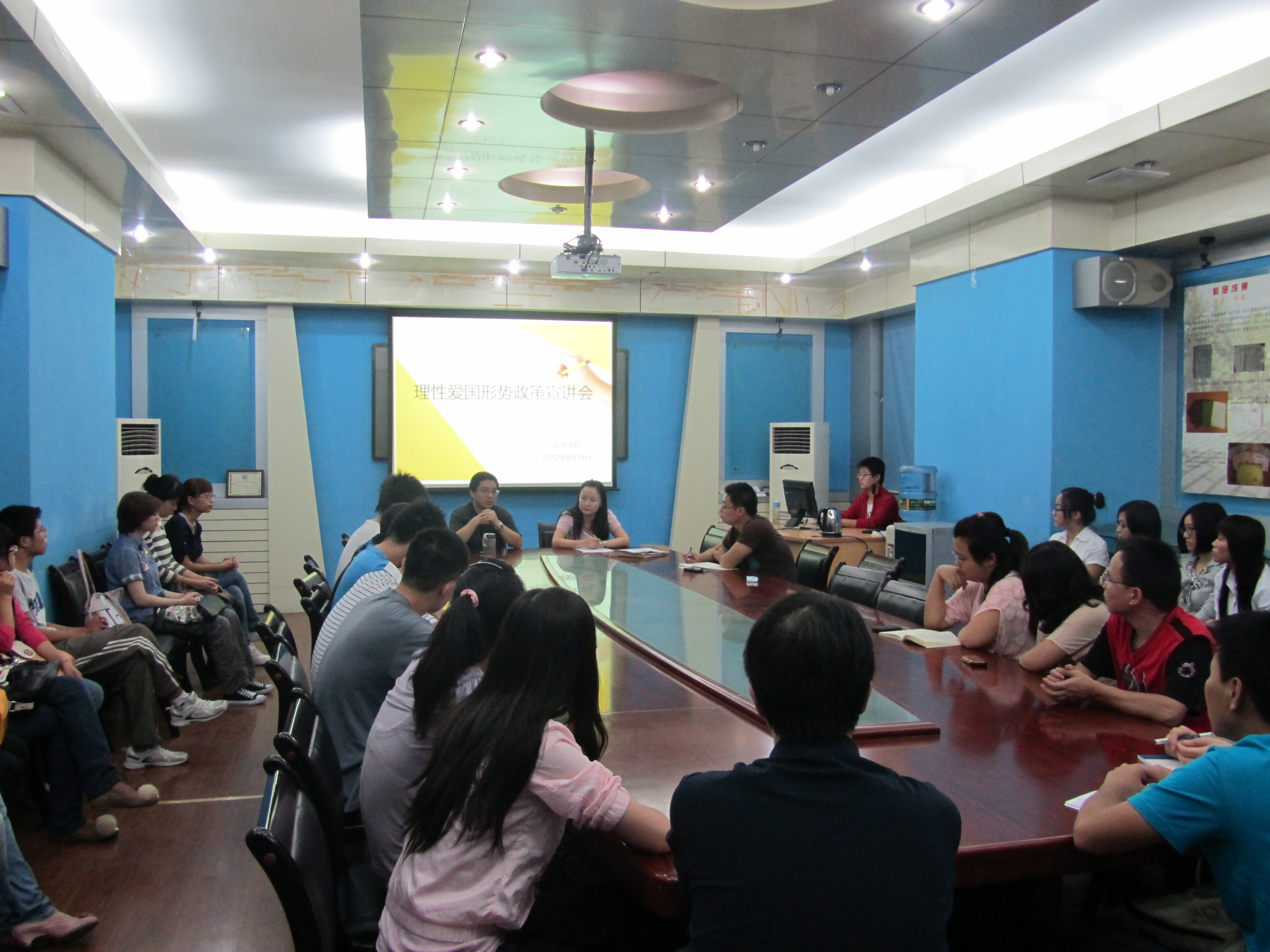 会议还涉及了近期的钓鱼岛事件,中日关系有所恶化的情况,李国良书记指出,捍卫国家主权领土完整是我们每个公民理所承担的责任和义务,但要理性爱国,恪守法律和道德底线,明辨是非,自觉抵制各种非法暴力行为,并立足自身,做好自己的本职工作。