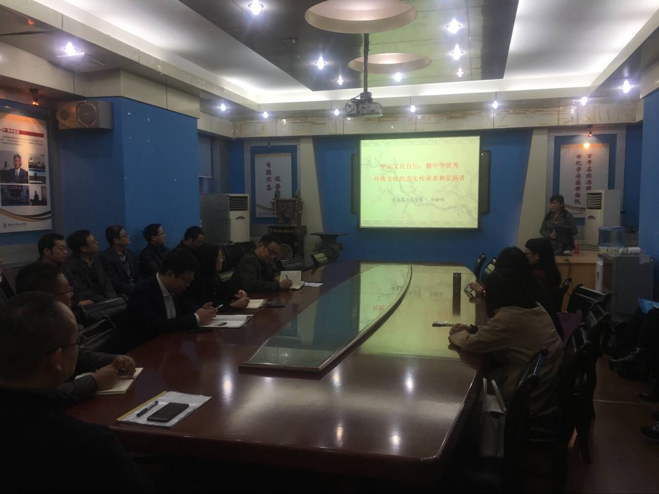 为切实加强党的十九大精神学习与宣传, 11月8日下午,776net必赢官网党委召开全体教职工大会,深入学习贯彻党的十九大精神,同时邀请学校党的十九大精神宣讲团成员、马克思主义学院付粉鸽教授作了题为《坚定文化自信:做中华优秀传统文化的传承者和弘扬者》的专题报告,776net必赢官网全体教职工参加了本次学习。