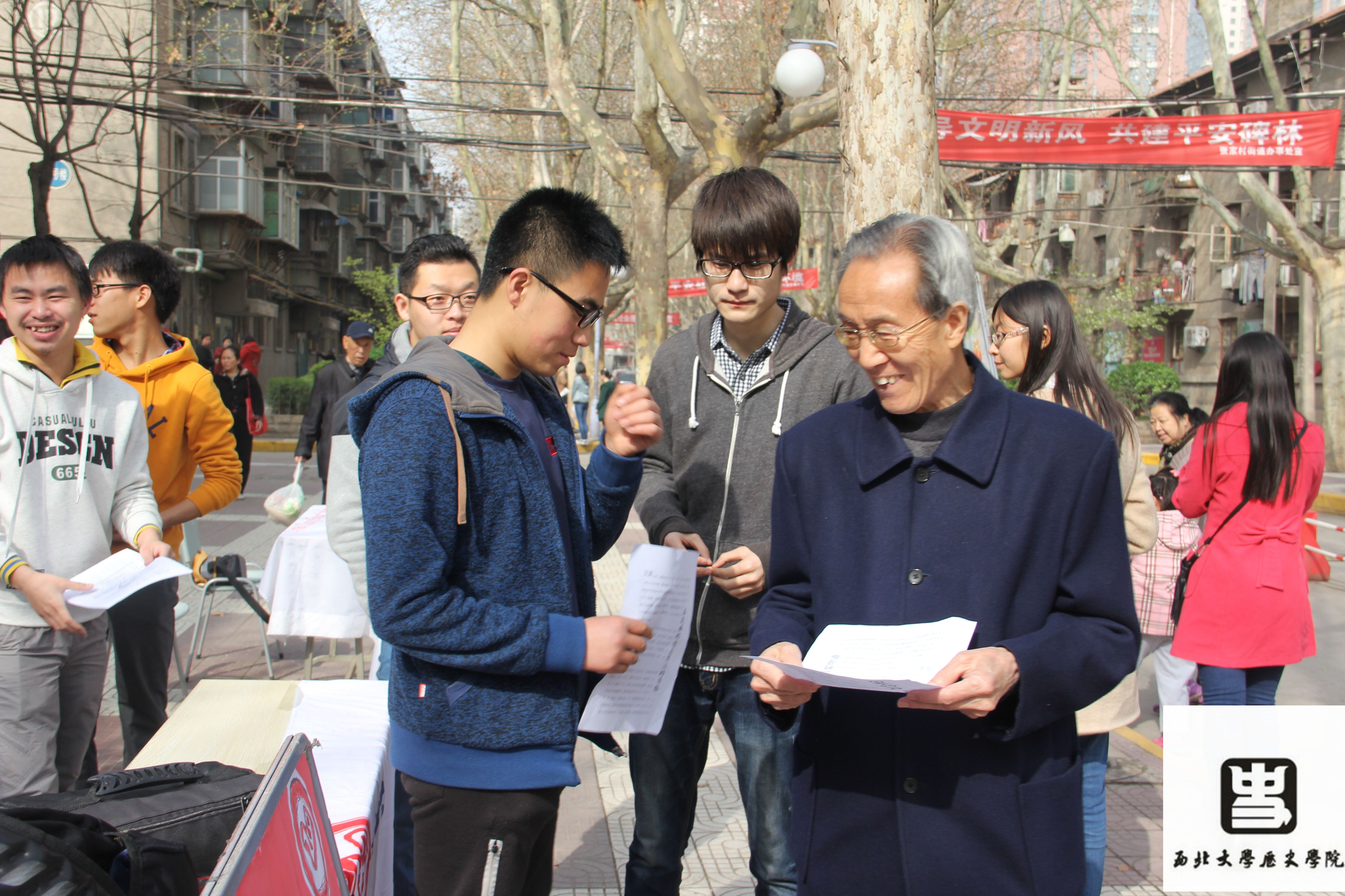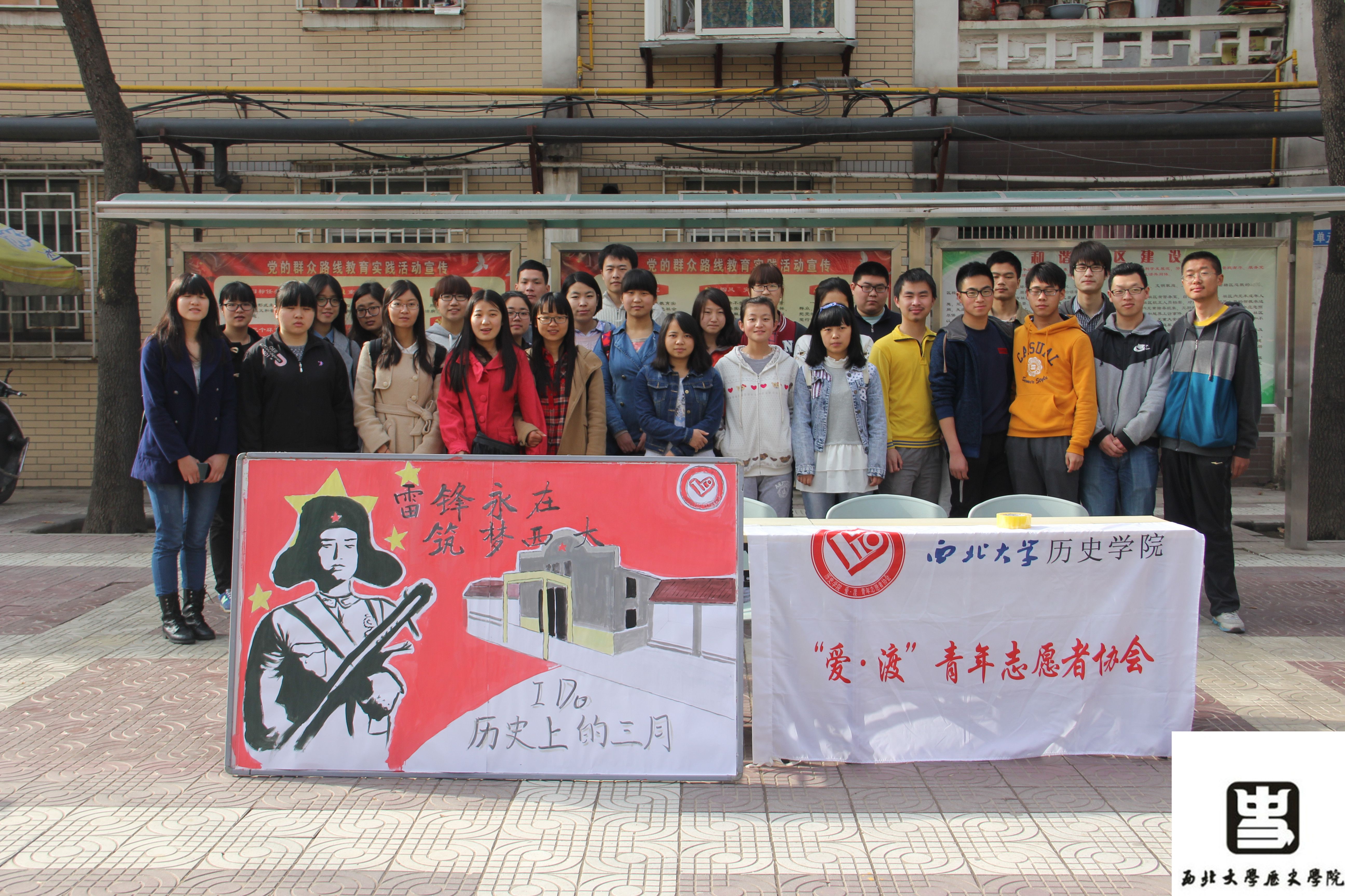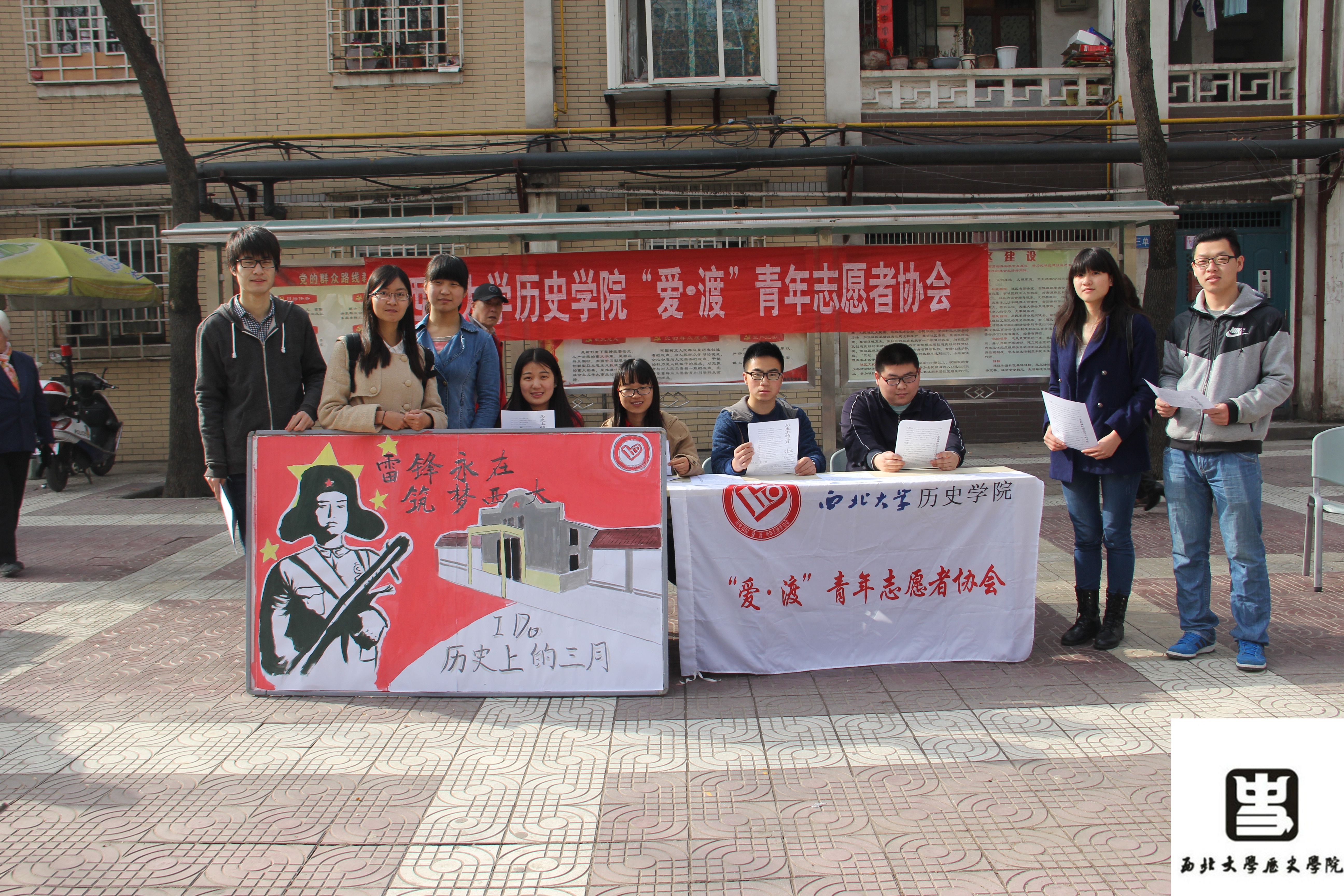 三月二十八日上午,春风和煦,蜂采花藤,初阳微漫,树影隆葱。西北大学776net必赢官网爱渡志愿者协会协同北校区六支志愿者队伍,共同举办了以“雷锋永存,筑梦西大”为主题的学雷锋、树新风活动。在这次集体行动中,我们776net必赢官网爱渡志愿者协会的任务是普及关于“历史事件上和民俗传承中的三月文化”的相关知识,并协同其他队伍一起清理主干道上的垃圾。