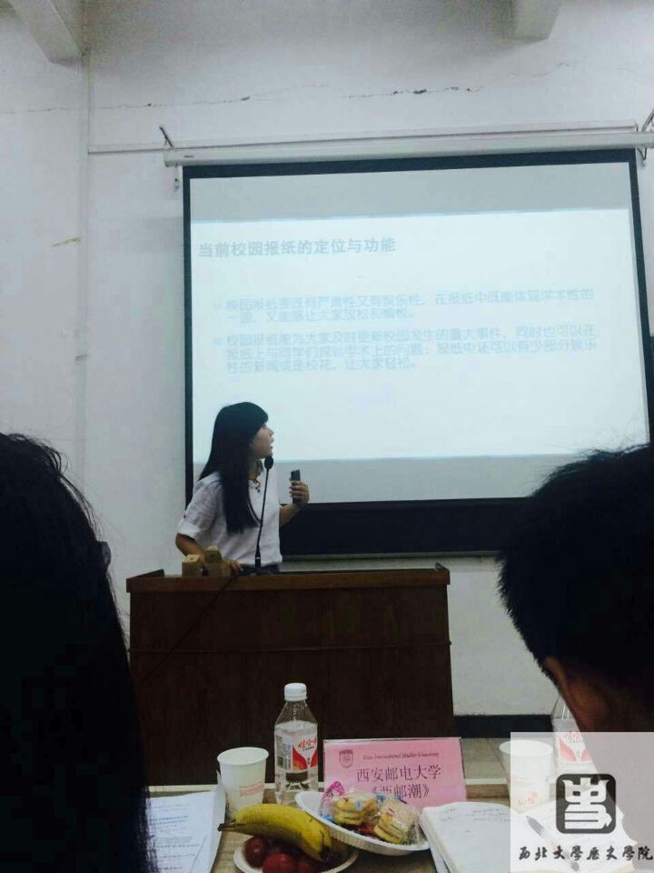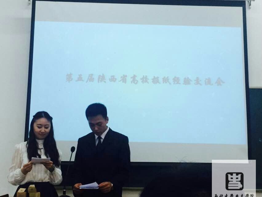 在当下的信息时代,纸媒的生存道路越来越窄,但纸媒作为一种传统传媒,经得起历练,必有过人之处。陕西省第五届高校报纸交流会本着交流纸媒发展经验,促进高校间的友好关系,增进办报信心的目的应愿召开。会议共分会前准备、欢迎致辞,经验交流三个环节。我院的宣传部的张馨、贾铭睿同学参加了此次会议,会前准备期间,她们给各与会院校代表赠送了我院报纸《望族》;经验交流环节,张馨同学代表我院上台,作了《当前校园报纸的定位与功能》的演讲,准确的描述出了当前校园报纸的现状与功能,有利于我们认清当前校园报纸的发展状况。 通过此次会议,我院《望族》编辑部了解了当前校园纸媒的状况,并且对未来我院纸媒的发展做出了一定的规划;同时也与友好高校学院增进了友谊。祝我院《望族》在将来能取得更大的进步。