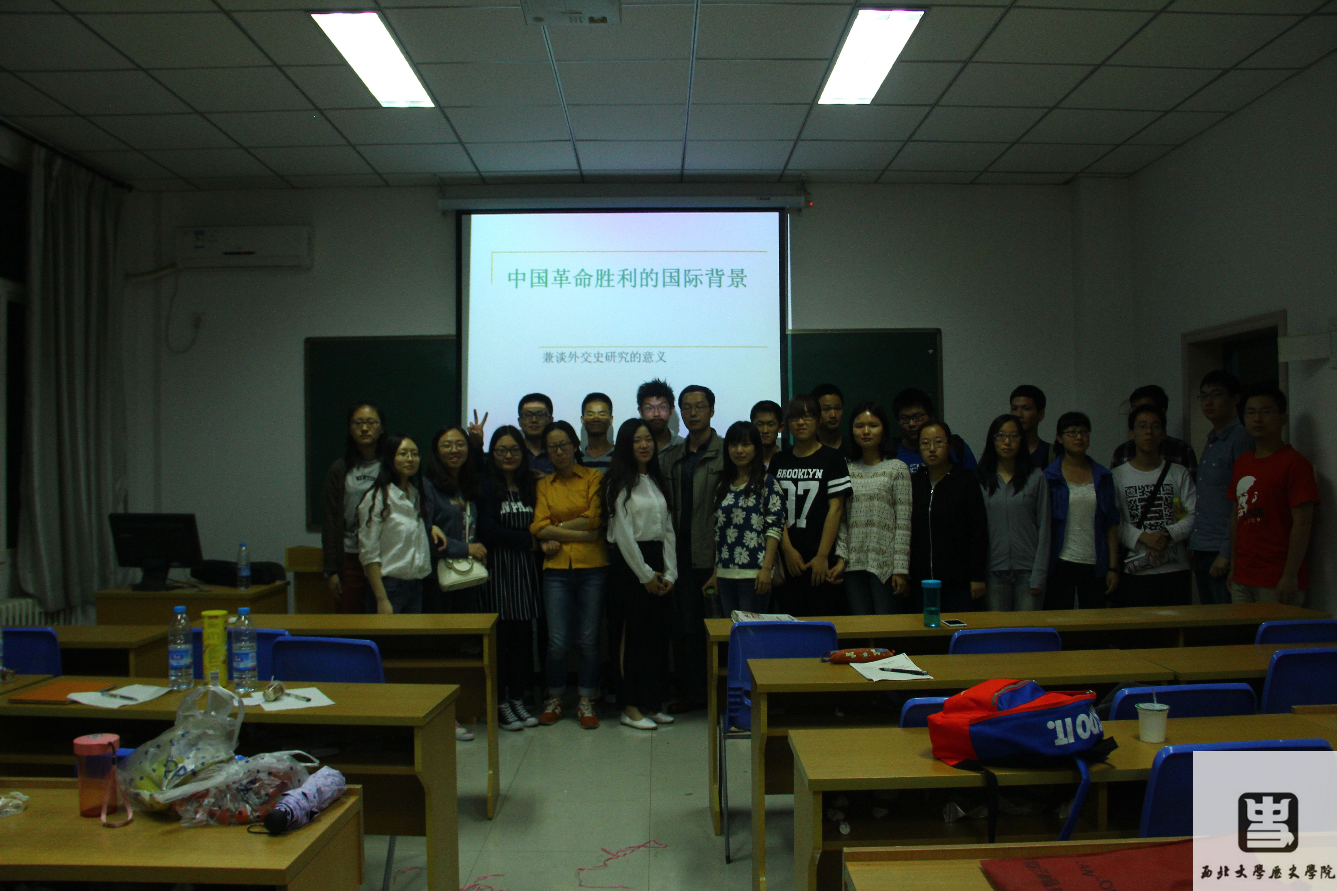 学生会学习部请来了我院男神讲师罗毅老师为大家做了题为《中国革命胜利的国际背景——兼谈外交史研究的意义》的专题讲座,老师首先向大家介绍中国革命胜利的内政;其次老师结合史料详细的分析了二战之后雅尔塔会议对中国的利弊,以此来告诉大家不要低估革命胜利的国际背景。最后大家合影留念,宣告本次活动的圆满结束。