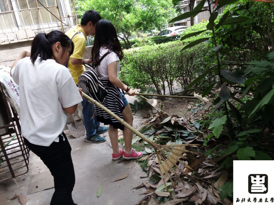 5月17号下午一点半到三点,西北大学776net必赢官网爱渡志愿者协会的志愿者们在梁悦同学的带领下来到了西大新村,进行义务清洁活动。