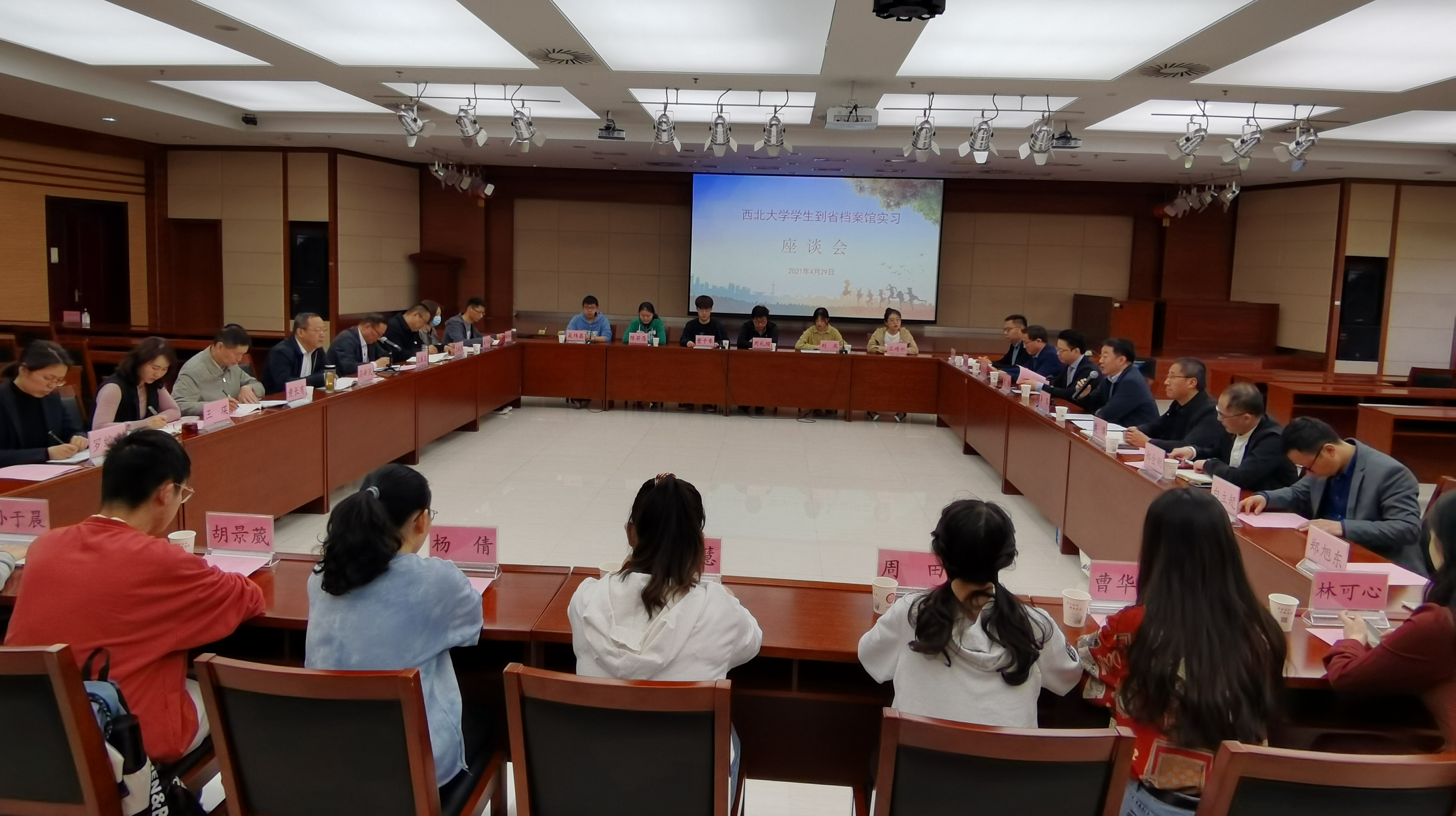 4月29日上午,776net必赢官网2017级毕业生实习座谈会在陕西省档案馆三楼会议室召开,座谈会由省档案馆人事处处长王展志主持,省委副秘书长、省档案局馆长高新民,776net必赢官网院长李军、党委副书记樊涛、副院长曹循,教师代表郑金刚、兰梁斌、白立超、单印飞、郑旭东,院团委书记余洪、省档案馆相关部门负责人及全部实习生参加。