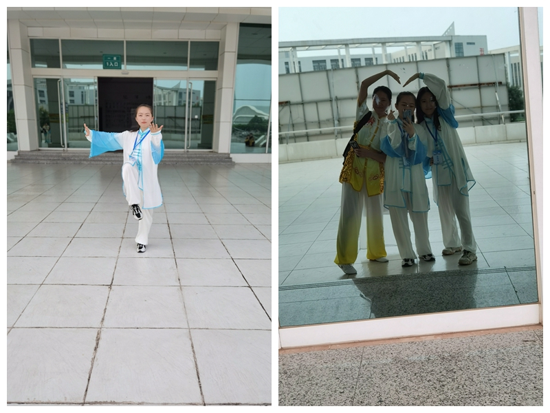 为了准备这次比赛,从本学期开学以来,我们的训练就抓得格外严格,队里几乎没有人请假。五月底,正式的高强度集训拉开帷幕,除了日常的每周三次训练和晨练外,周末又增加了三次训练,赛前的几周几乎只有周六下午有空闲时间。训练强度和训练量不断增加,从一招一式到套路的整体节奏,从体能到精气神。老师带着我们六个人一起熬过无数个炙热难耐的下午,撑过全身的酸困痛乏,一起磨砺蜕变,伴随着鼓励来到了赛场上。其实刚开始,我们队进行的不顺利,有些很有希望的项目最后成绩并不理想。我心里一边为队友痛惜,一边暗自憋一口气,内心告诫自己一定要赢回来。但这真不是说说就来的,真站到场边我还是无比紧张:第一场陈氏因为打的太快取得第三,但好在武氏太极拳和三段杨氏的发挥比较正常,成绩还算理想。比赛完的最后一天,领队丁老师对我们说:“要学会输,也要学会赢。胜败乃兵家常事,有春风得意,就有黯然失色,赢了就总结经验,输了就反省教训,但最终,总要继续前行。”通过这次比赛,我对竞技体育的精神有了更深的理解和体会。几天的比赛结束,一时的荣辱悲欢很快就会被尘封在档案里,而真正鲜活的是记忆里是被汗水浸透的队服,和身边并肩而行的身影。