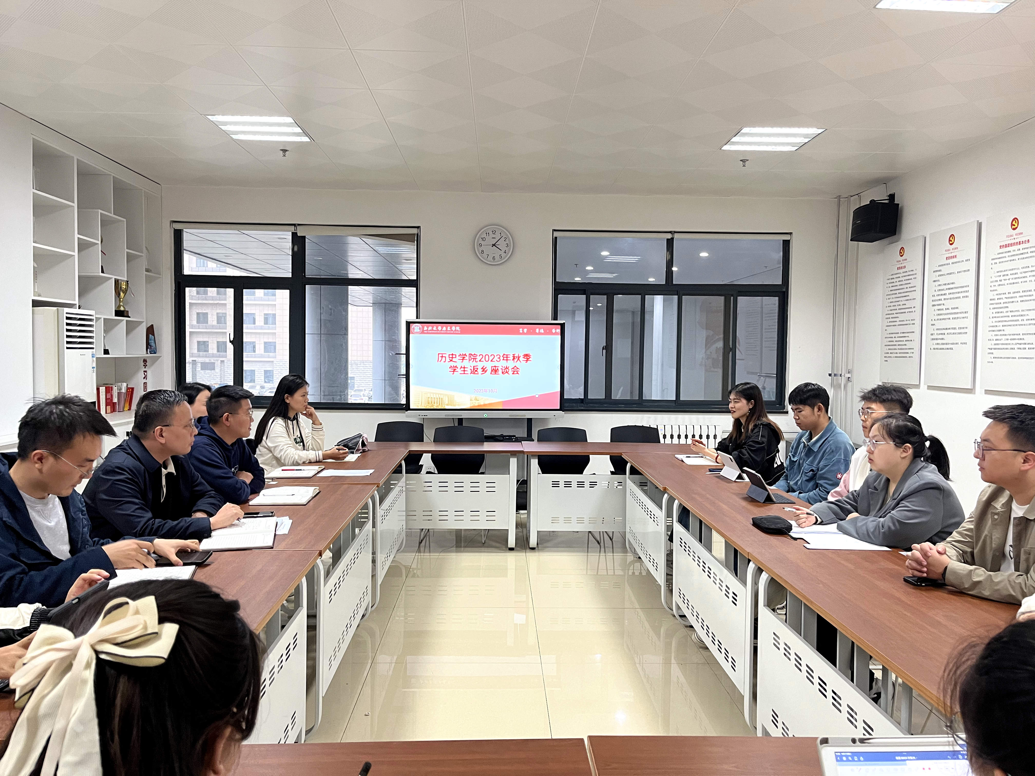 座谈会气氛轻松愉悦,与会同学围绕学习贯彻习近平新时代中国特色社会主义思想主题教育、党的二十大精神、暑期“三下乡”社会实践、家乡变化见闻、暑期实习、乡村振兴、国内经济形势、巴以冲突等热点依次交流发言,并对学院本科生课程设置、宿舍生活、文体活动等方面的问题困惑提出建议,展现历史学子强烈的社会责任感和主人翁意识。