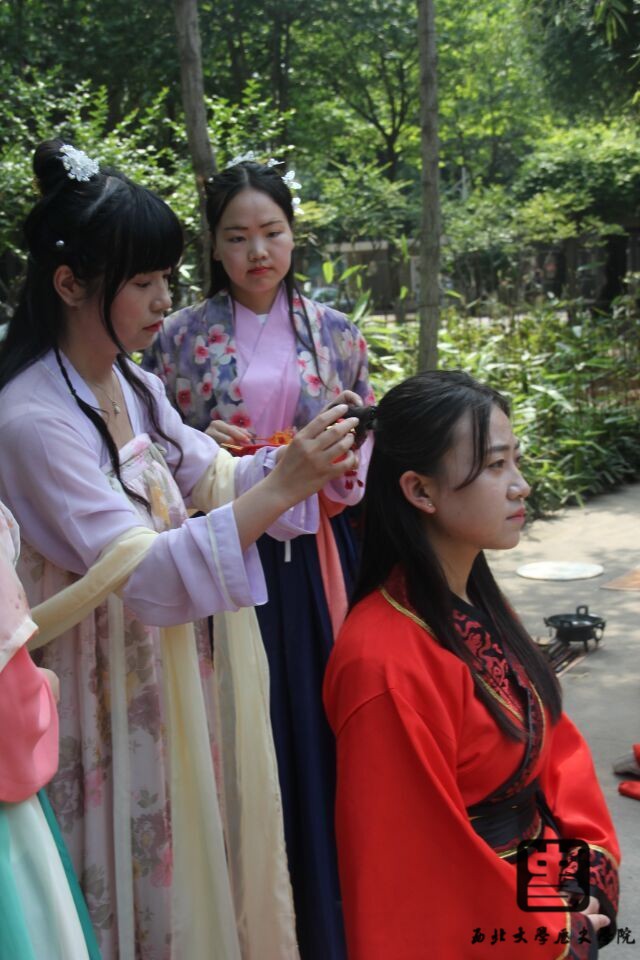 5月18日下午,我院在太白校区孔子像前举办“三加弥尊 昭明元服”——第二届西北大学汉服集体成人礼活动。此次活动在全校征集三十名同学作为冠者及笄者参加,并特邀请各院系相关辅导员老师作为长者为同学们加冠及笄。