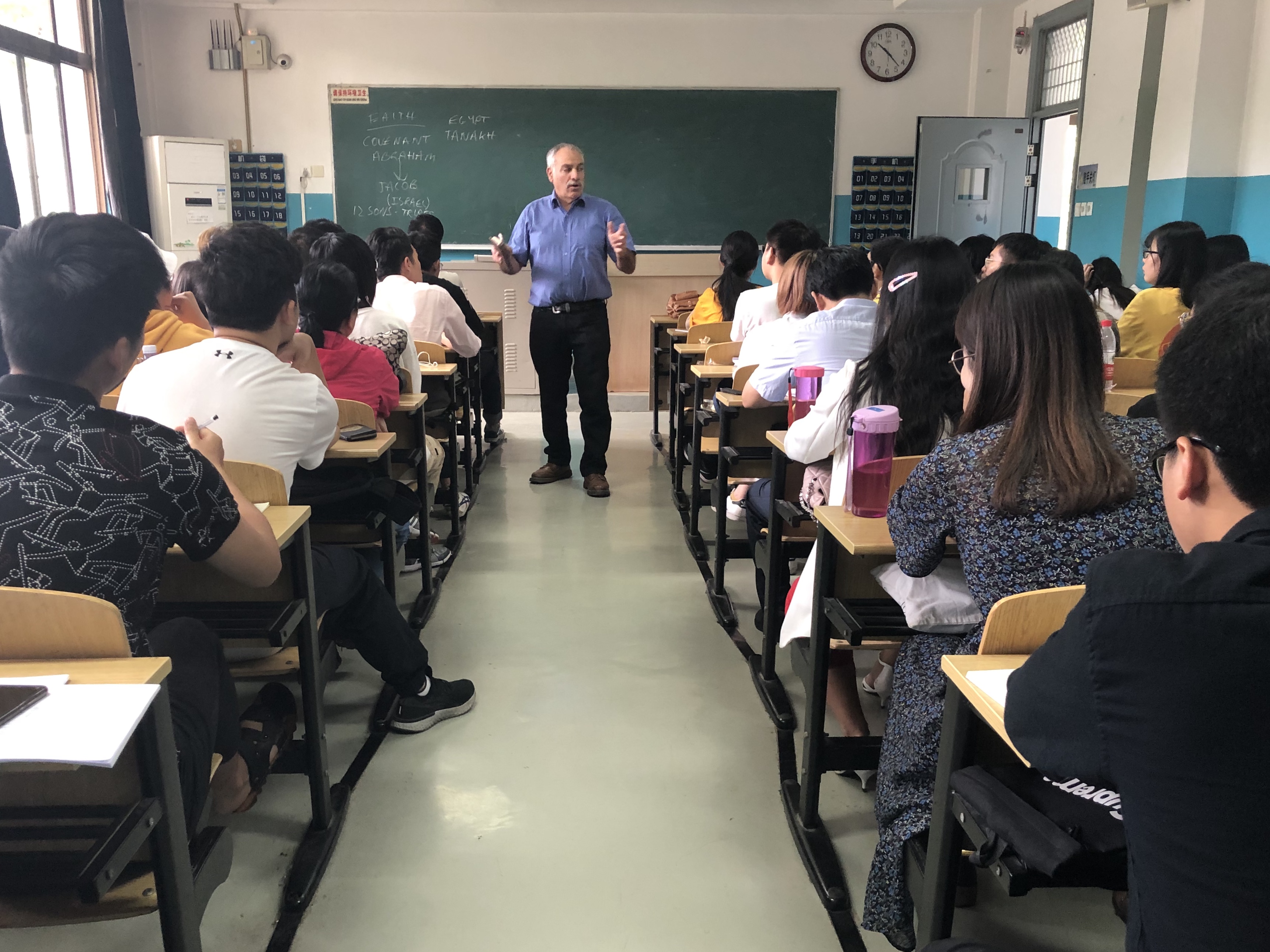 5月30日上午,以色列·尼曼教授做了题为“西方一神宗教——犹太教、基督教和伊斯兰教”的讲座。尼曼教授首先讲述了犹太人同埃及人、腓尼斯人、菲利斯丁人、巴比伦人、波斯人等不同人群相互影响下第一个一神宗教——犹太教的形成过程,接着说明了基督教在犹太教中分离和发展起来的过程和原因。最后,Yisrael教授论述了伊斯兰教的形成过程和早期穆斯林同犹太人之间的关系,说明了三大一神教之间的相互联系和相似性。他还同师生进行互动,回答了学生们提出的问题。