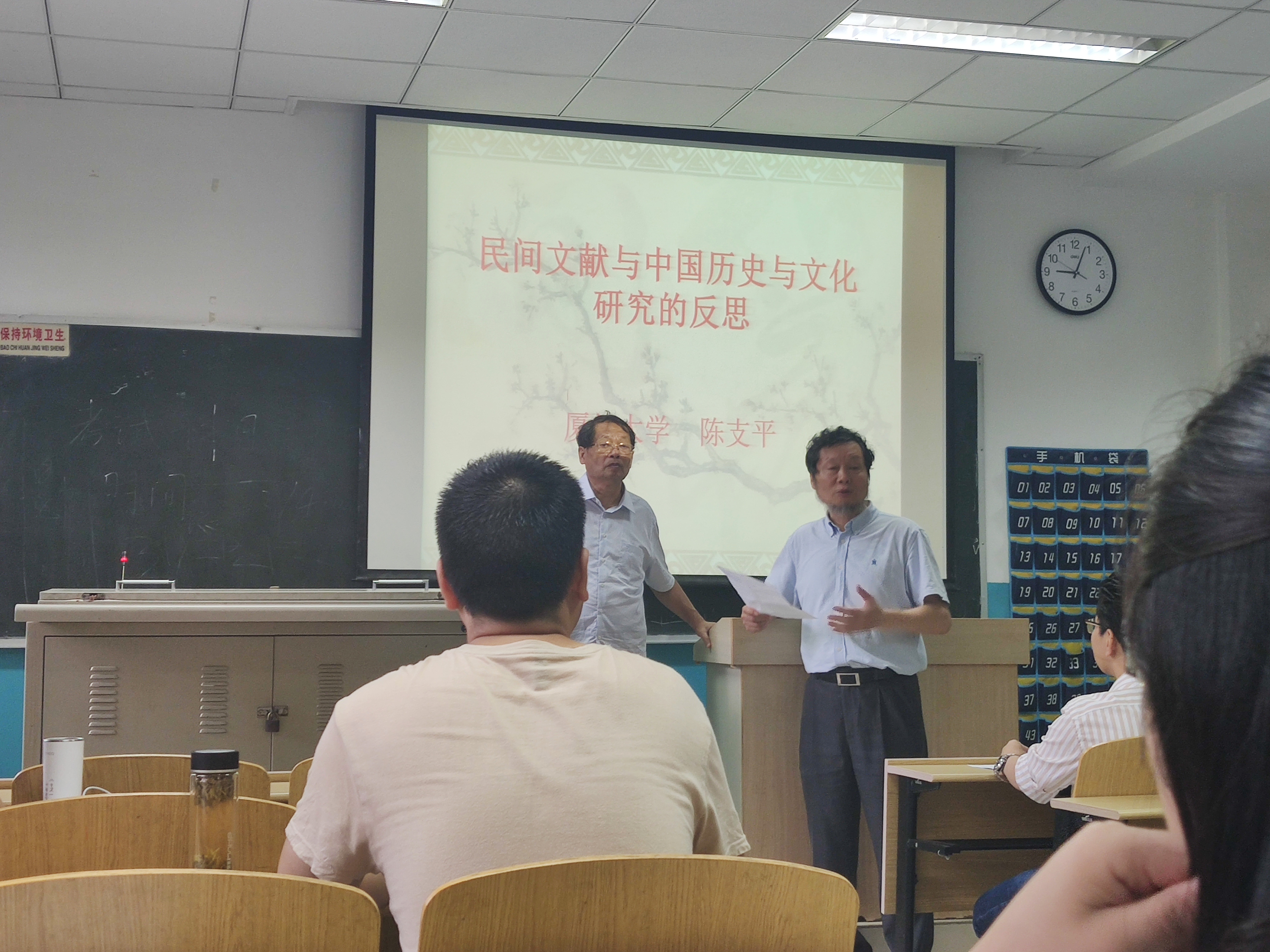 6月27日上午,厦门大学国学院院长陈支平教授应邀做客我校“侯外庐学术讲座”第一百七十九讲,为师生做题为“民间文献与中国历史与文化研究的反思”的学术报告。报告由我院院长陈峰教授主持。