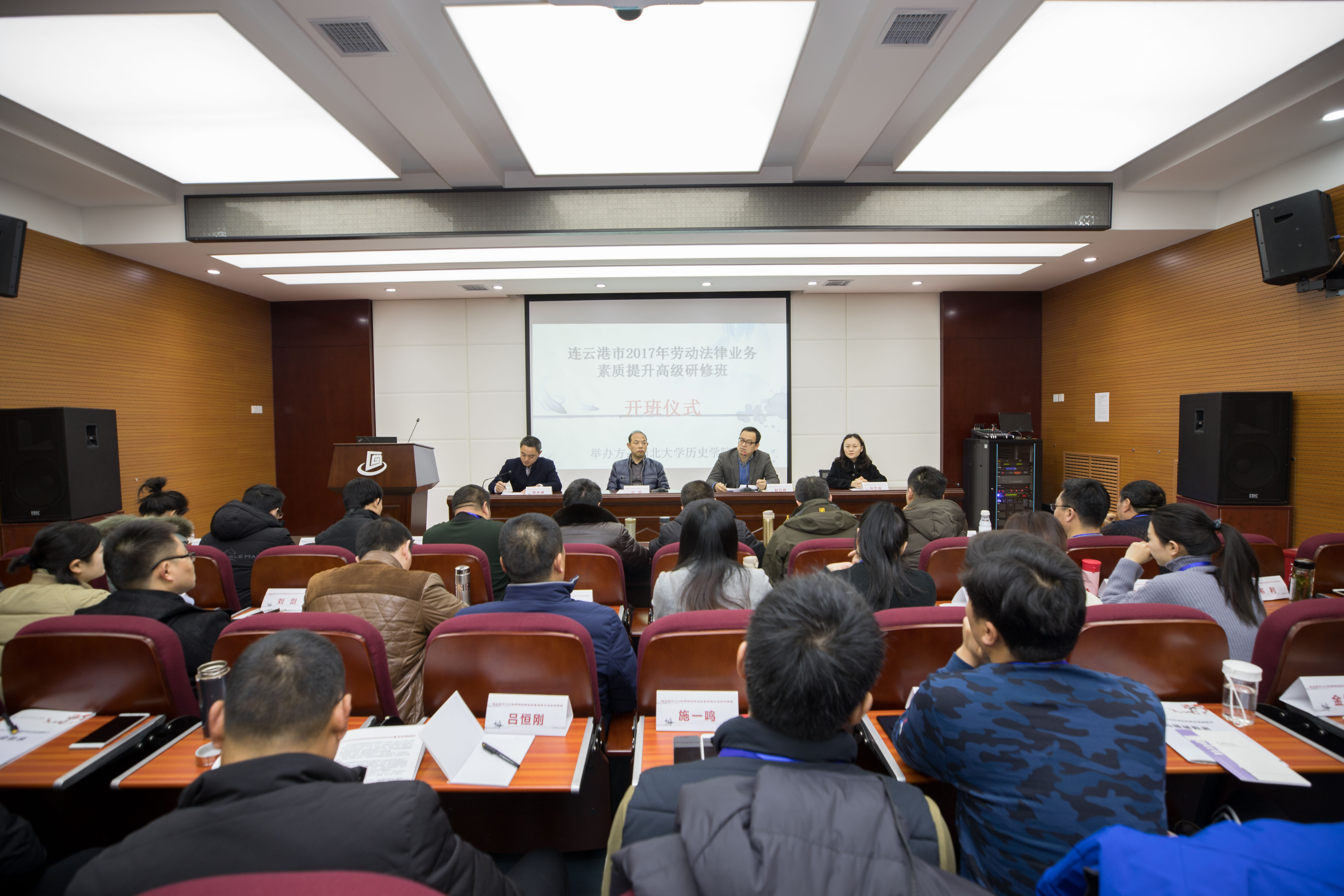 12月18日上午,由连云港市人社局与我校776net必赢官网共同举办的“连云港市2017年劳动法律业务素质提升”高级研修班在我校太白校区开班。与会人员由连云港市人力资源和社会保障局、劳动人事争议仲裁院和监察大队以及我校776net必赢官网负责人构成,江苏连云港市人社局和下辖各级政府单位的30余名参训领导干部参加开班仪式。