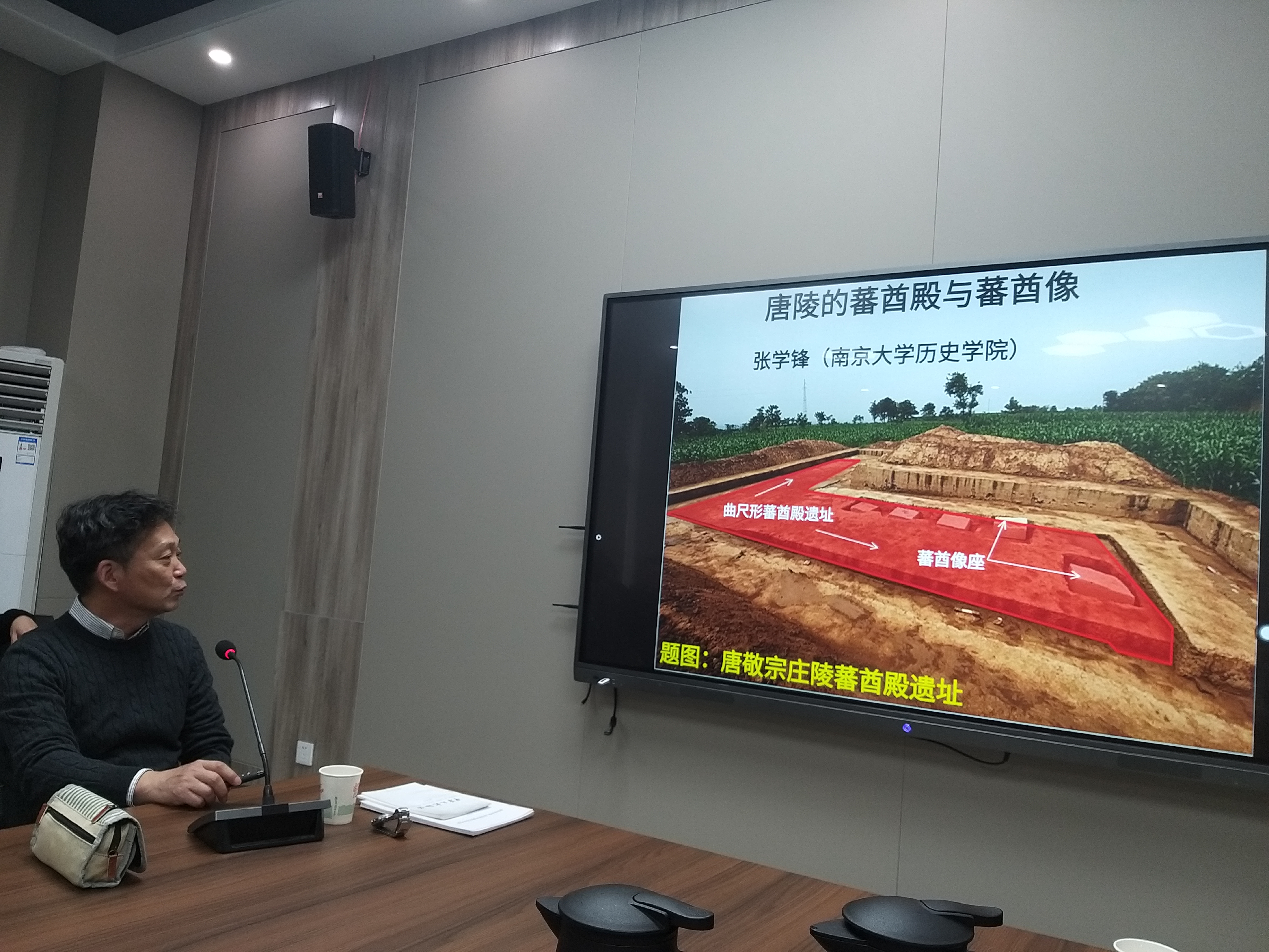 12月5日下午,张学锋教授主讲西北大学“名家讲坛”,为师生带来题为《唐陵蕃酋殿与蕃酋像》的学术讲座,讲座由贾志刚副教授主持。除来自校内的众多师生参加讲座外,还有来自陕西师范大学、西安电子科技大学、碑林博物馆等多家科研院所的专家到场聆听。讲座中,张学锋教授结合实地考察的经历,图文并茂地展示了唐陵蕃酋像及蕃酋殿的考古发掘状况,指出自睿宗桥陵始至唐末,蕃酋像和蕃酋殿的位置,从陵园南门外东西双阙的北侧,移到了双阙的南侧。随后张学锋教授依据唐陵平面形制效仿都城长安所建的一般规律,指出唐陵蕃酋像所处的位置大致相当于长安城宫城的正门承天门。如以睿宗桥陵为分界点,桥陵修建之前的蕃酋像、蕃酋殿位置大致在承天门之内;自桥陵完成至唐末,蕃酋像、蕃酋殿的位置变动到承天门之外。蕃酋殿位置的变化与现实中的礼制的变动密切相关,尤其与玄宗即位后的礼制改革关系较大,是现实礼制的影响力在物质形态上的展现。