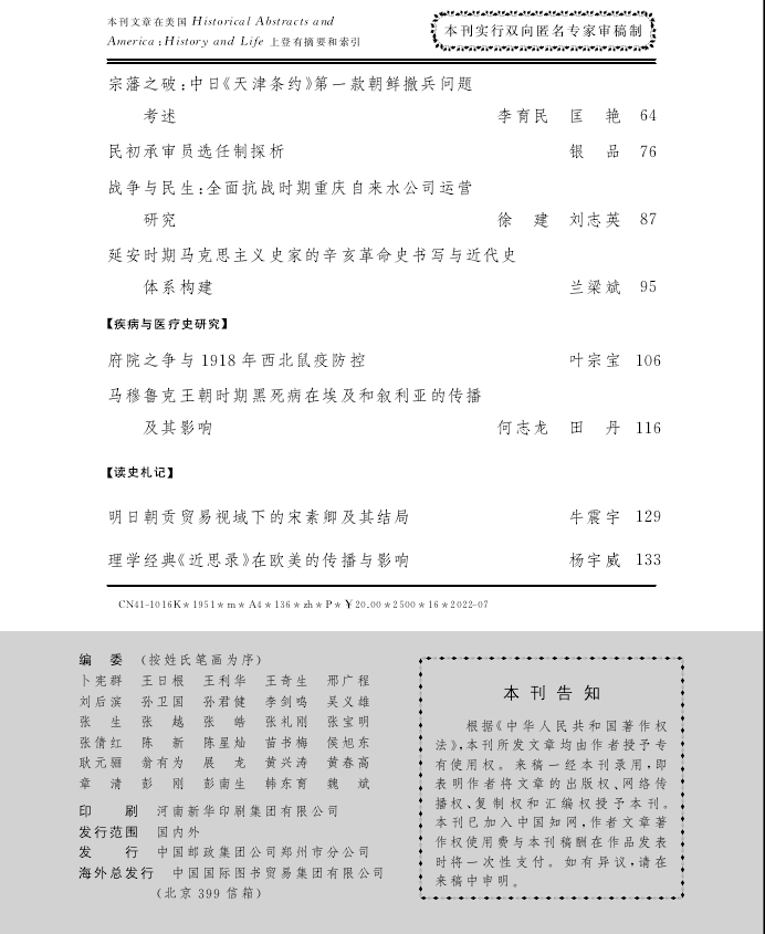 近日,我院兰梁斌副教授在权威期刊《史学月刊》2022年第7期发表了题为《延安时期马克思主义史家的辛亥革命史书写与近代史体系构建》的专题论文。