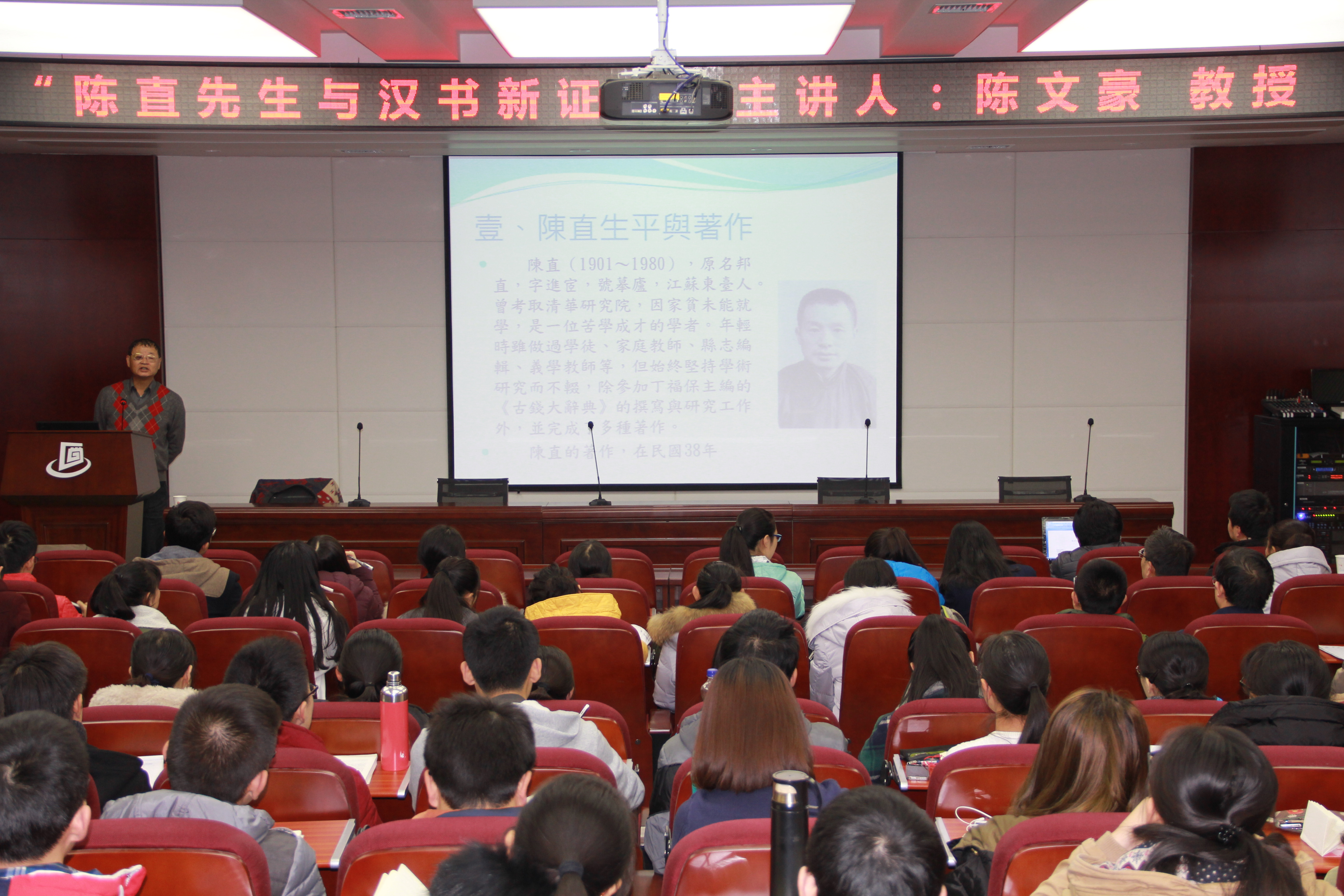 11月23日下午,台湾彰化师范大学陈文豪教授应邀为作客我校“名家讲坛”,为我院师生作了题为“陈直与《汉书新证》”的学术报告,报告会由776net必赢官网院长陈峰教授主持,我院外师生百余人聆听了报告。