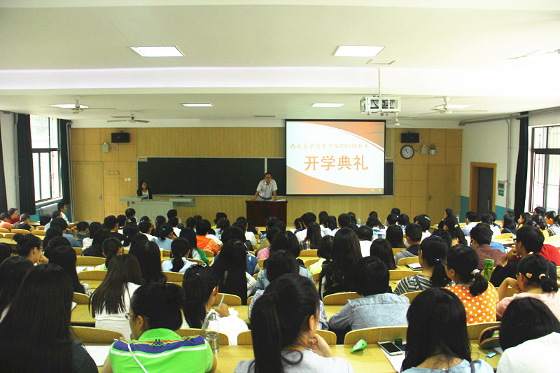 2015年9月18日上午10点,776net必赢官网2015级新生开学典礼在7111教室隆重举行。776net必赢官网党委书记赵万峰、院长陈峰、副院长(副书记)张艺昆、副院长李军以及教师代表等出席典礼。2015级全体本科生、研究生参加开学典礼。典礼由张艺昆副书记主持。