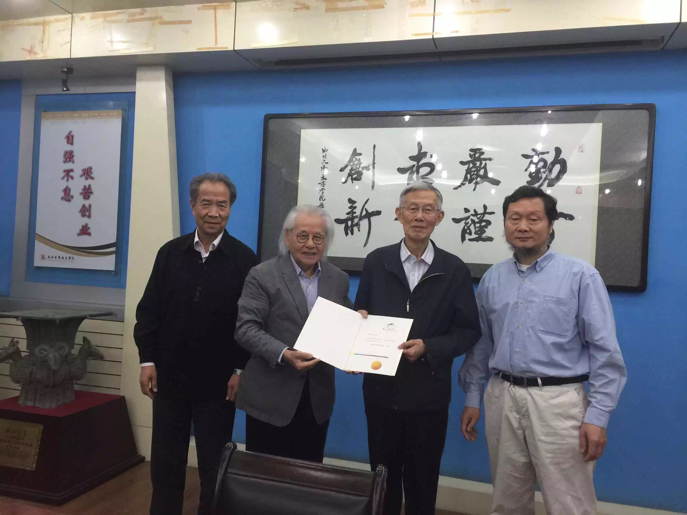 56,新加坡著名艺术家、企业家,炎黄国际文化协会会长,中国艺术研究院特聘研究员林祥雄先生与北京大学东方学研究院张玉安教授、唐孟生教授到访我校,与我院商议举办“21世纪东方文化论坛第三届国际学术研讨会”相关事宜。名誉校长张岂之先生、李浩副校长分别与林先生进行了友好交流,学院党政领导与到访专家就举办论坛具体事宜进行了深入交流。