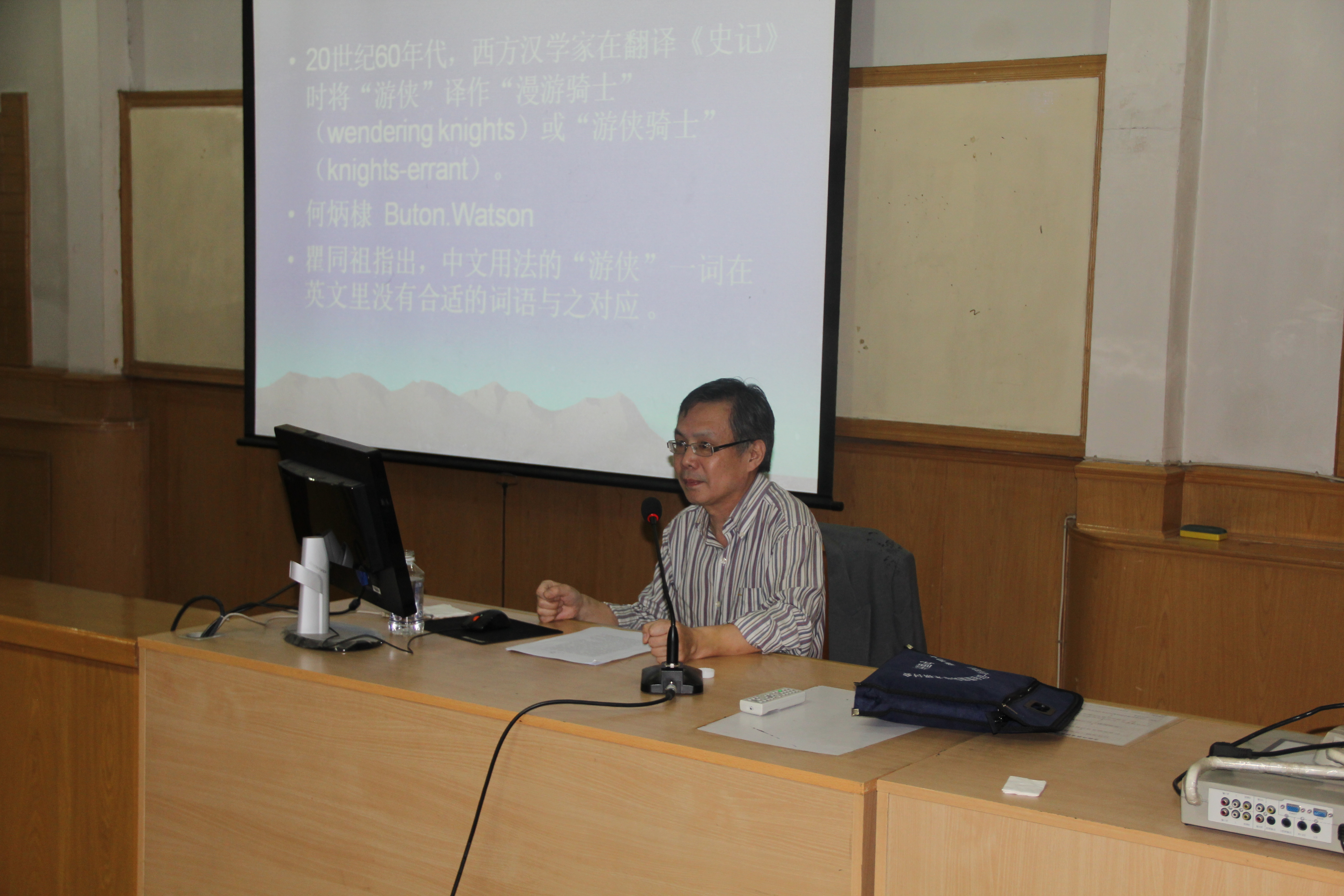 彭卫先生首先从游侠作为中国社会史上具有本土性的事项入手,阐述了自游侠出现之后就存在着关于其形象和历史的不断重建。在这一过程中主要存在着三种意义上的历史想象,即政治性想象、艺术性想象和学术性想象,其中,学术性想象把游侠放入学理的框架内进行思考,力图厘清游侠的真实原貌。接下来,彭先生对游侠的源头进行了考察,针对学界主要存在的七种游侠起源说,彭先生对其一一进行辨析,指出各种起源说的合理与不足之处;在此基础上,彭先生对游侠的概念进行了辨析,从最早提到游侠一词的《韩非子》入手依次进行梳理,兼及《说文解字》中的解释,使人们认清了游侠一词含义的历史流变。随后,彭先生论述了游侠的生命历程,分析了游侠存在的社会基础,进而引出了游侠的存在与国家秩序和社会秩序的关系,从而做到了“概念史与社会史的观照”。进而引申出了更深层次的史学理论方面的论题,即史家在评说游侠问题时实际上凸显了史家自己的伦理性,即历史学的伦理性问题,这是其他学者长期以来所忽略的领域,引起了在座学生的共鸣。