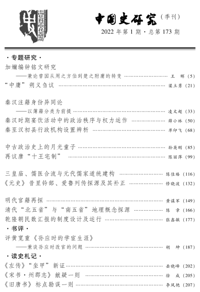 近日,我院单印飞老师的专题论文《秦至汉初县行政机构设置辨析》、胡坤教授的长篇书评《评黄宽重<孙应时的学宦生涯>——兼谈孙应时改官的问题》在历史学顶级期刊《中国史研究》2022年第1期刊出。