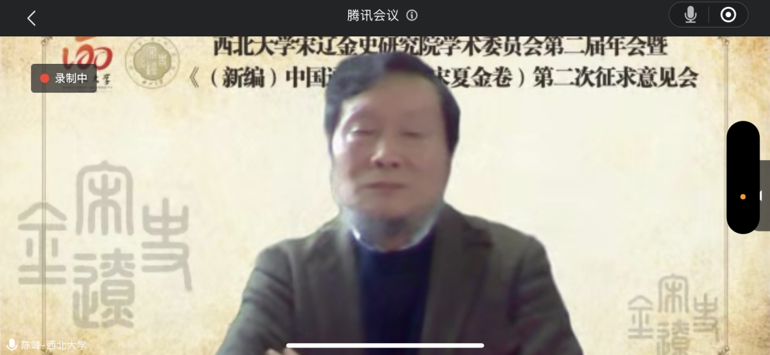 2022年11月27日下午,“西北大学宋辽金史研究院学术委员会第二届年会暨《(新编)中国通史》(辽宋夏金卷)第二次征求意见会”在线上举行。本次会议作为西北大学建校120周年的系列学术活动之一,得到了中国历史研究院《(新编)中国通史》纂修工程编委会办公室、西北大学及校内社科处、776net必赢官网等单位的大力支持。西北大学社科处处长韩志斌、776net必赢官网院长李军出席会议并致辞,宋辽金史研究院学术委员会委员中国人民大学包伟民教授、河南大学程民生教授、吉林大学程妮娜教授、中山大学曹家齐教授、上海师范大学戴建国教授、宁夏大学杜建录教授、华东师范大学黄纯艳教授、河北大学姜锡东教授,以及研究院全体成员,参加了本次会议。会议由宋辽金史研究院常务副院长王善军主持。