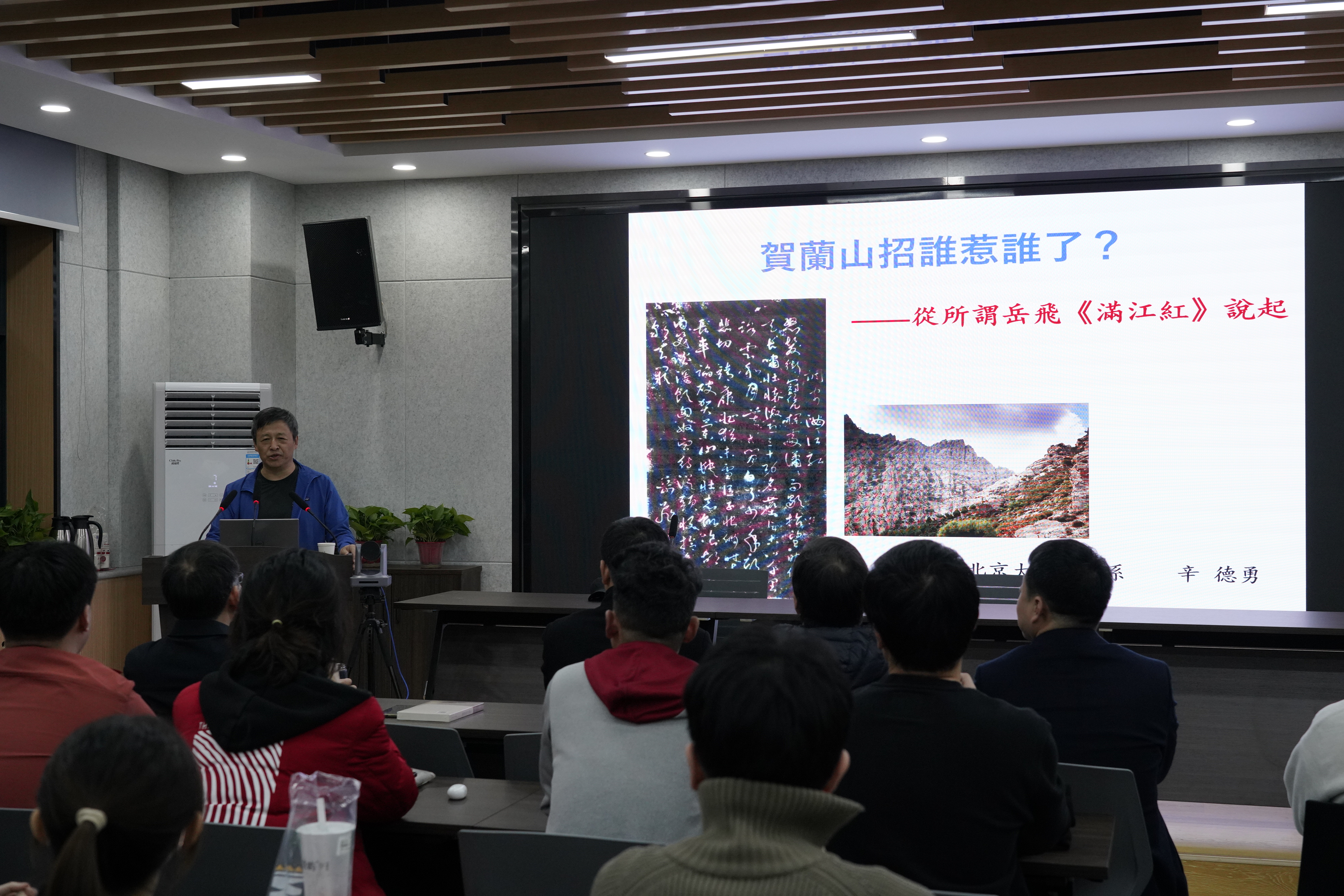 辛教授从余嘉锡先生指出《满江红》词为后世伪造说起,对邓广铭先生的反驳、张政烺先生进一步引申余嘉锡论点的情况作了详细梳理,分析了各自论据及论证过程。辛德勇教授认同余嘉锡、张政烺先生的后世伪造说,而对邓先生的真品说持怀疑态度。辛教授认为,邓先生所认可的文献流传的一般规律不适用分析名气甚大的岳飞《满江红》。进而,辛教授从邓先生的思维路径(个人情怀)与史实论证(赵与时《宾退录》刊布年代问题)两方面加以分析,对邓先生的观点提出质疑。接下来,辛教授指出,根据“贺兰”意象在宋金元明的使用情况,《满江红》几无可能创作于南宋初年。最后,辛教授细致梳理了《满江红》词作从元杂剧到汤阴岳飞庙碑的流传线索,指明其来历。在演讲过程中,辛教授严谨求实又不失风趣幽默。讲座结束后,辛教授与在场师生积极互动,就史学研究方法、史学训练、人工智能的挑战等问题作了精彩解答。