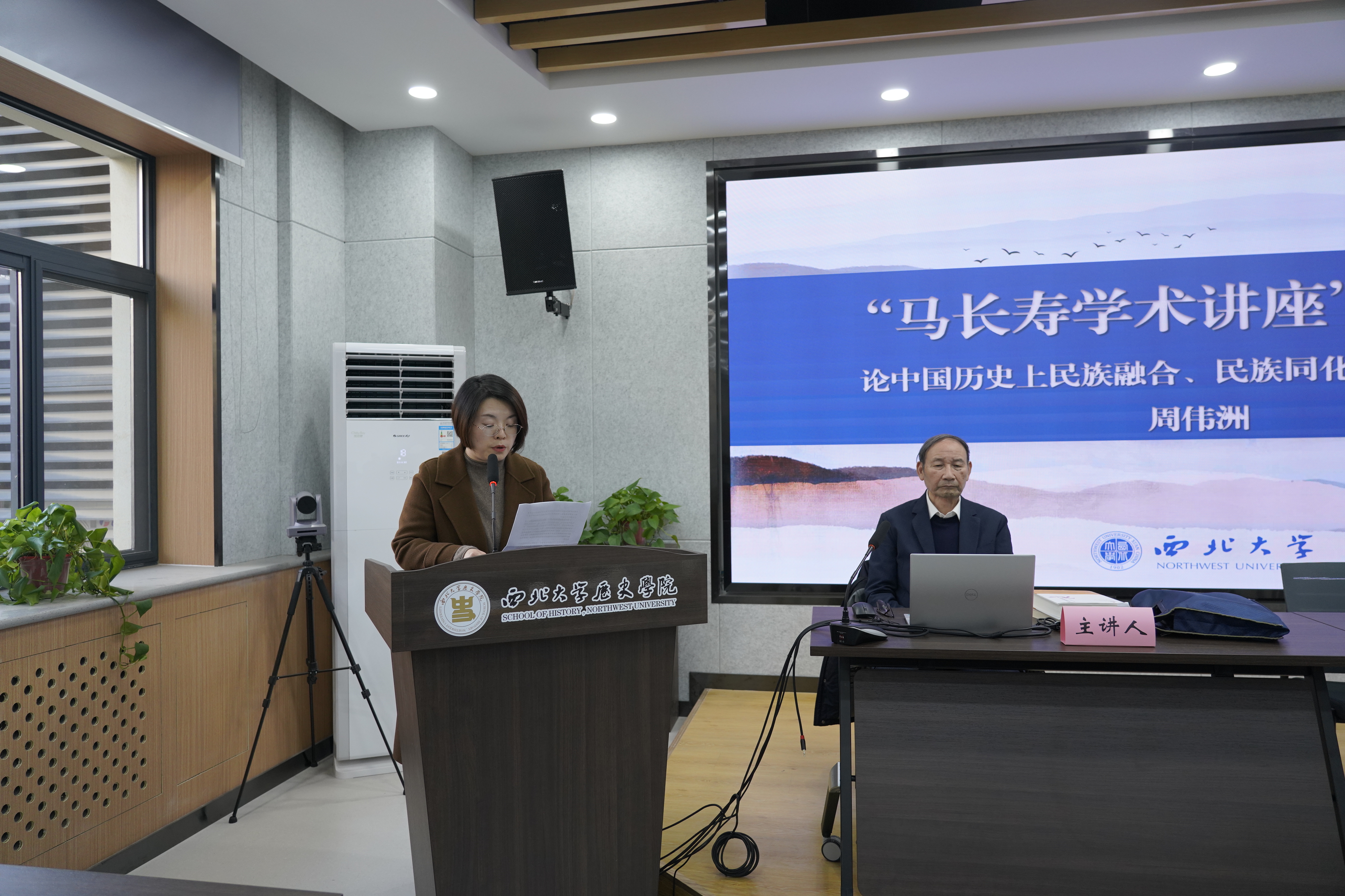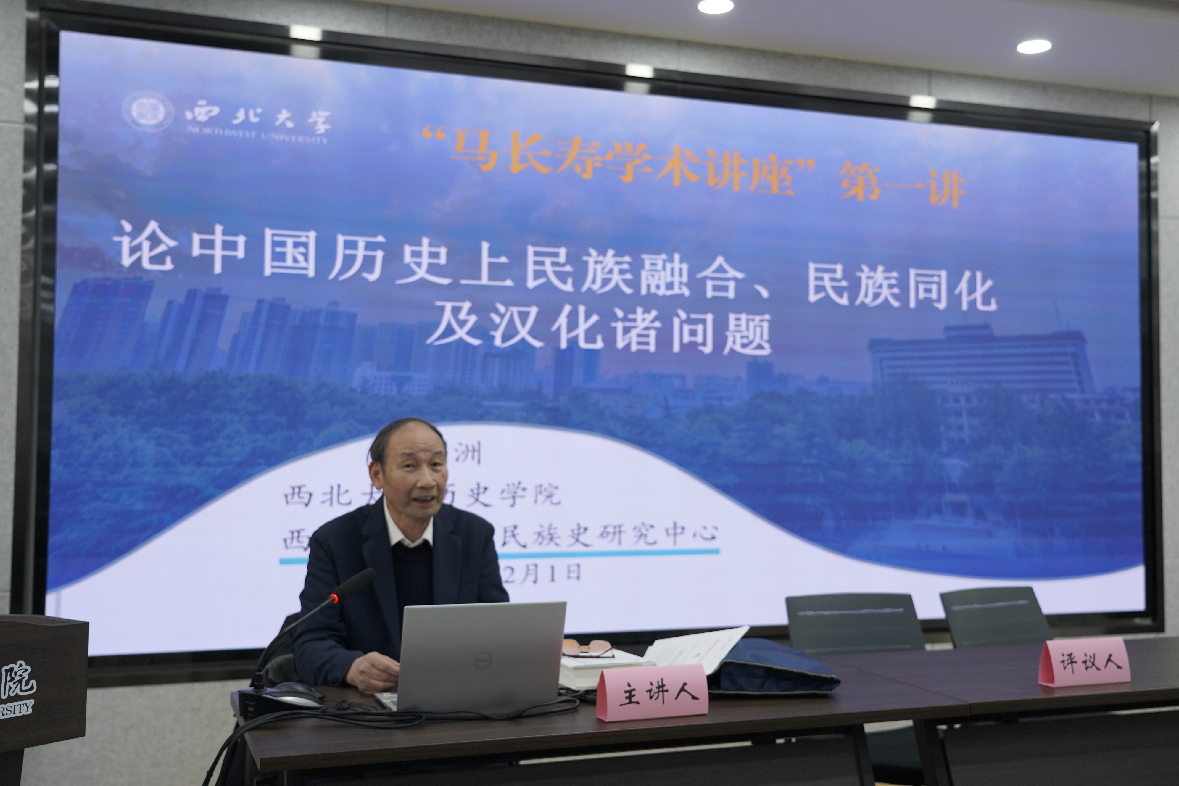 12月1日,由西北大学党委统战部、西北大学铸牢中华民族共同体意识研究基地主办,西北大学中华民族史研究中心承办的“马长寿学术讲座”第一讲在西北大学776net必赢官网二层报告厅举行。西北大学776net必赢官网教授,西北大学中华民族史研究中心主任、铸牢中华民族共同体意识研究基地首席专家周伟洲作了题为《论中国历史上民族融合、民族同化及汉化诸问题》的学术讲座,776net必赢官网党委书记张茵出席讲座、776net必赢官网史党社教授、彭建英教授参与评议,裴成国教授主持,校内外师生百余人聆听了讲座。