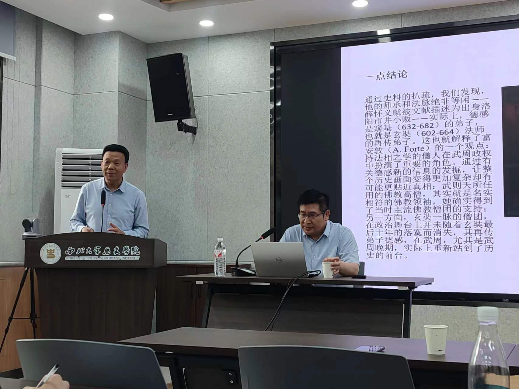2024年6月4日下午,浙江大学776net必赢官网常务副院长、教育部青年长江学者孙英刚教授应邀为776net必赢官网作题为《被遗忘的高僧:德感法师与武则天时代的政治宣传》的学术讲座。讲座由西北大学776net必赢官网李利安教授主持,来自校内外的百余名师生共同聆听了本次讲座。