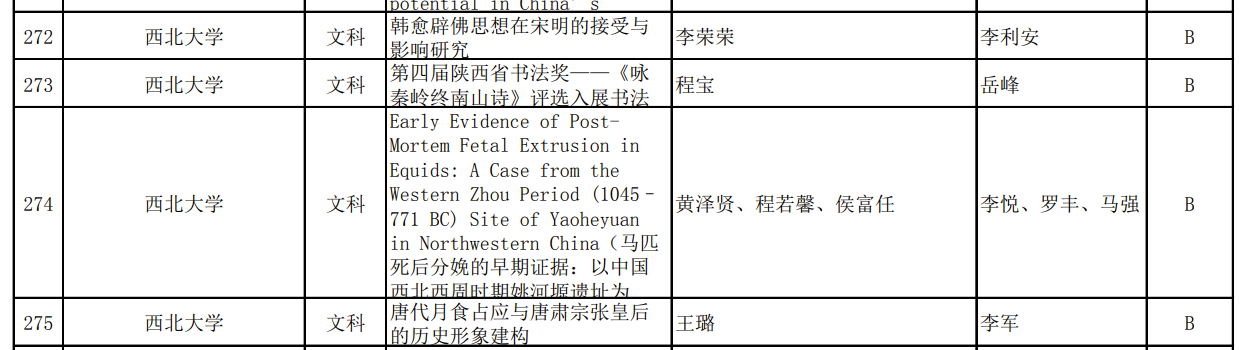 近日,陕西省第九届研究生创新成果展高质量成果名单公布,我院推荐的创新成果2020级博士生李荣荣《韩愈辟佛思想在宋明的接受与影响研究》(原载于《中国思想史研究》2024年第1辑,《中国社会科学文摘》2024年第10期转载;指导教师:李利安)获“文科组”二等奖;2020级博士生王璐《唐代月食占应与唐肃宗张皇后的历史形象建构》(《史学月刊》2024年第7期;指导教师:李军)获“文科组”二等奖。陕西省研究生创新成果展由省教育厅组织,集中展示省内各研究生培养单位创新人才培养成果,此次获奖充分展现了我院在研究生培养方面的良好成效。
