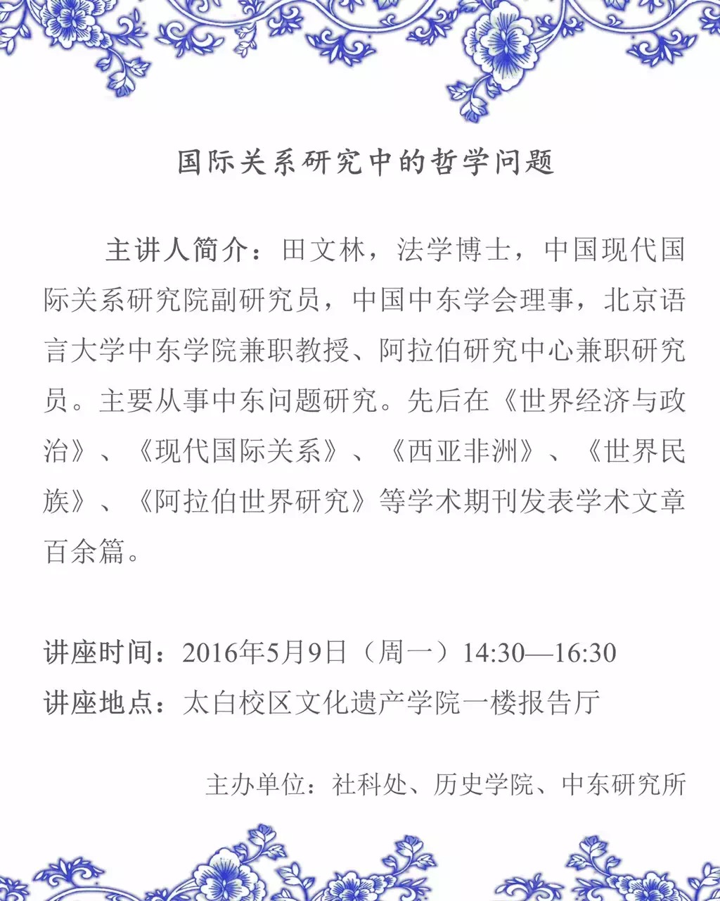 上一条:名师国际讲座 下一条:"中东局势和中国中东外交"学术讲座