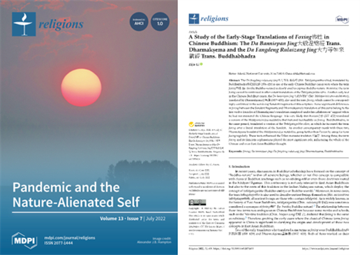 近日,我院青年教师李子捷在Religions 2022年第13卷第7期发表了英文专题论文 “A Study of the Early-Stage Translations of Foxing佛性 in Chinese Buddhism: The Da Banniepan Jing 大般涅槃經 Trans. Dharmakṣema and the Da Fangdeng Rulaizang Jing 大方等如來藏經 Trans. Buddhabhadra”。