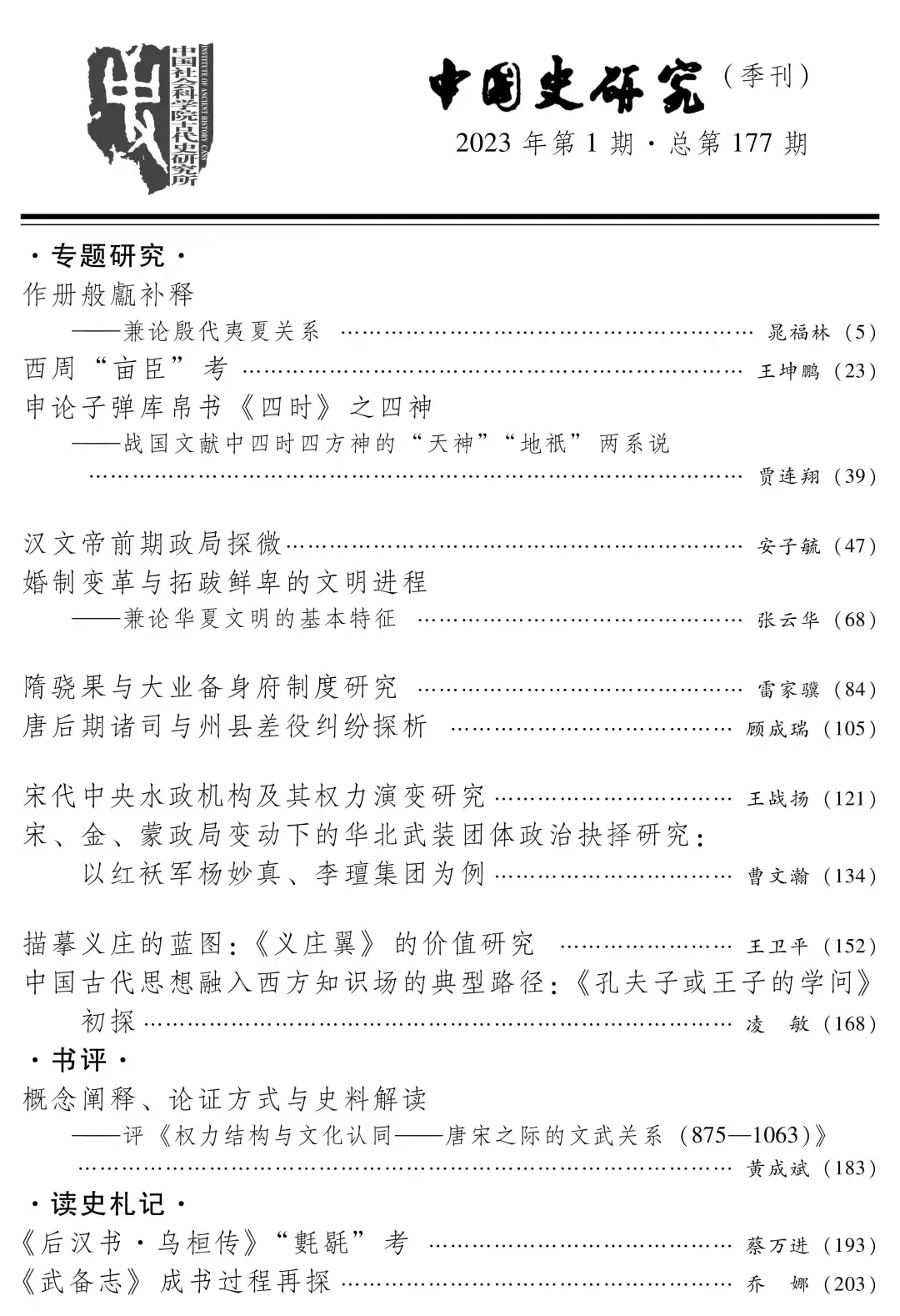 近日,《中国史研究》2023年第1期刊发我院特聘教授雷家骥、副教授顾成瑞的论文各一篇。