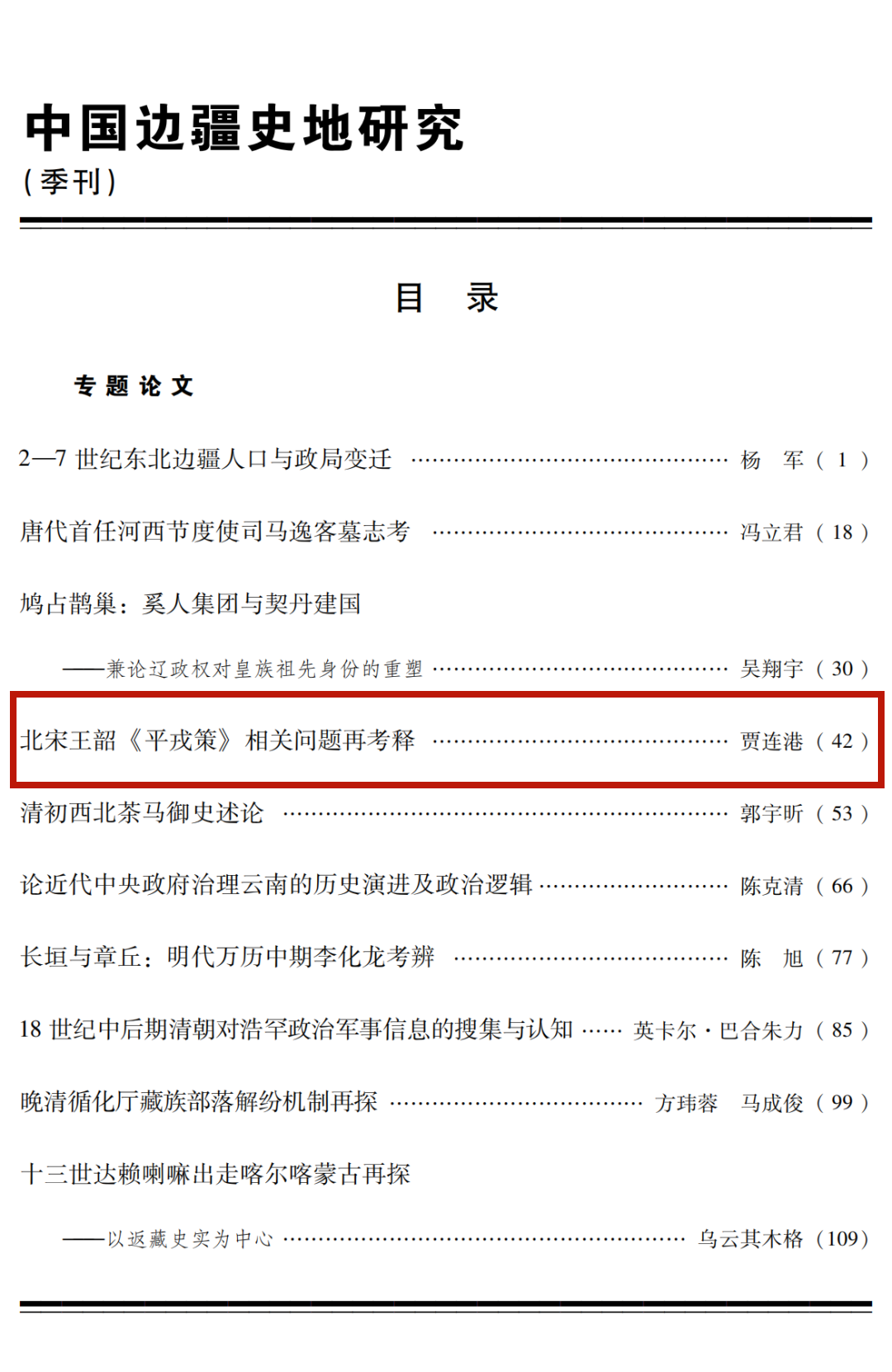我院贾连港副教授在《中国边疆史地研究》发表专题论文